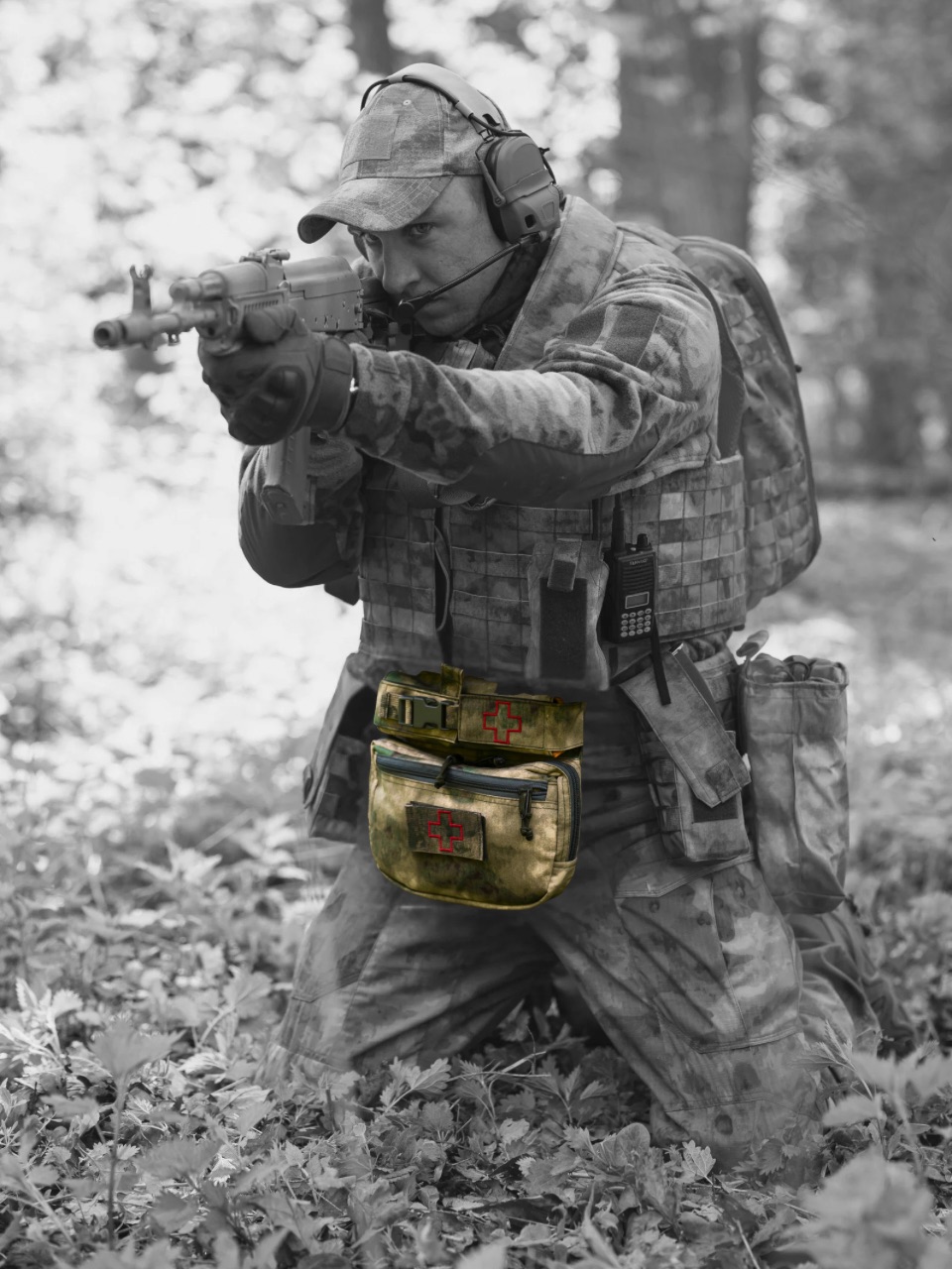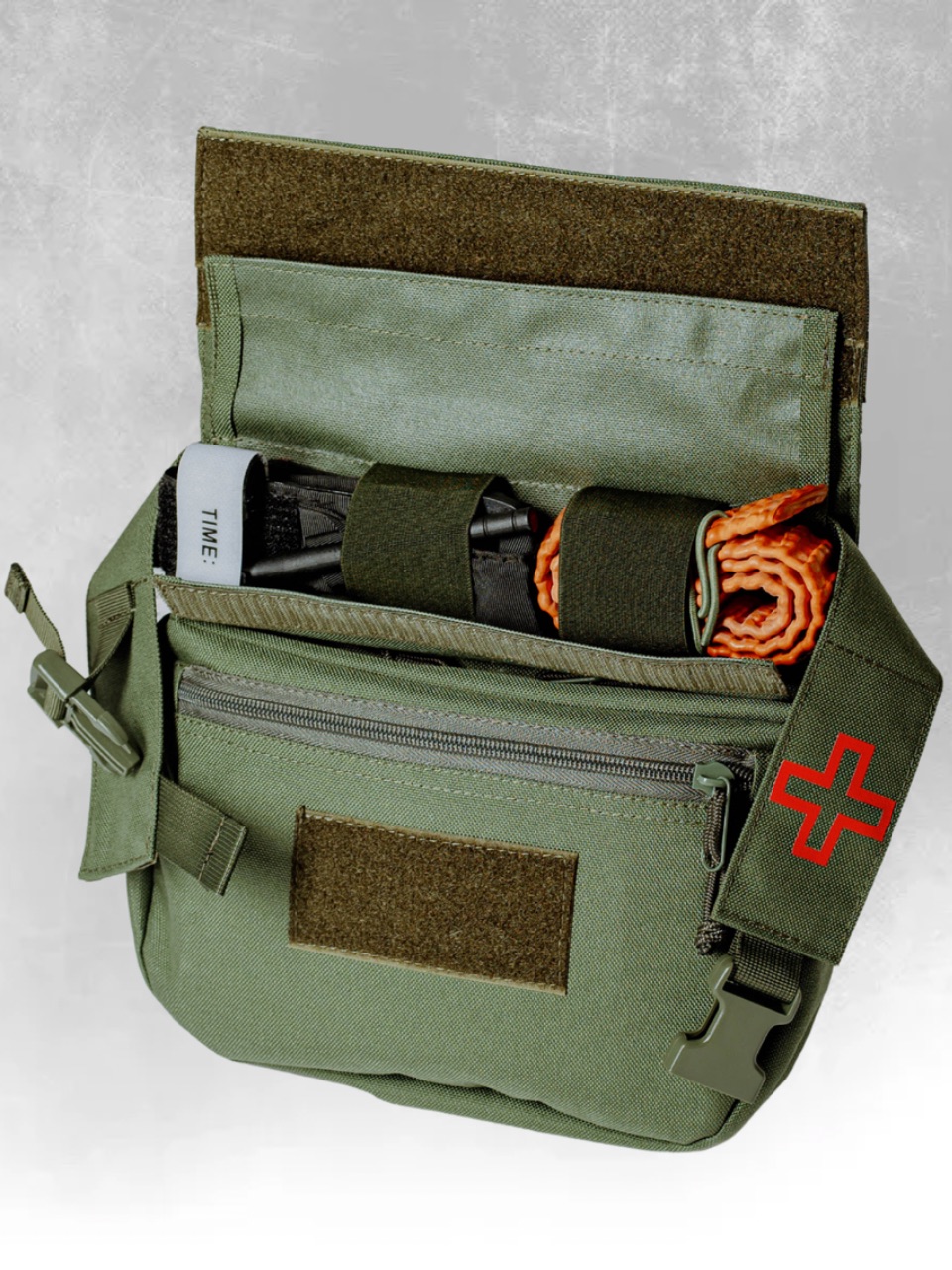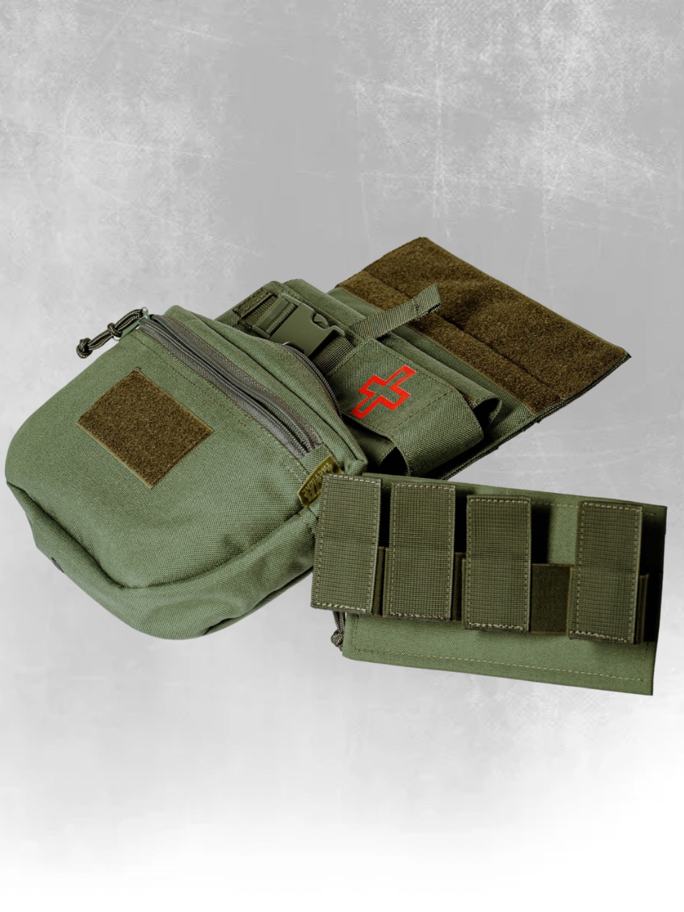 Напашный подсумок «Гриф» — утилитарный подсумок, который может использоваться как медицинский. Крепится на бронежилет или плитник в паховой области с помощью контактной ленты. Изготовлен из износостойкого нейлона.