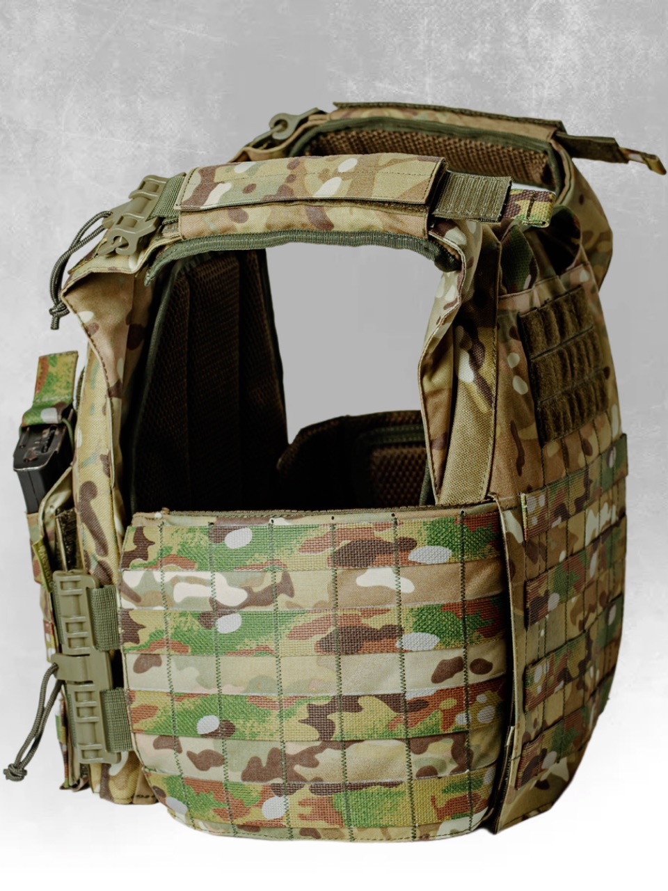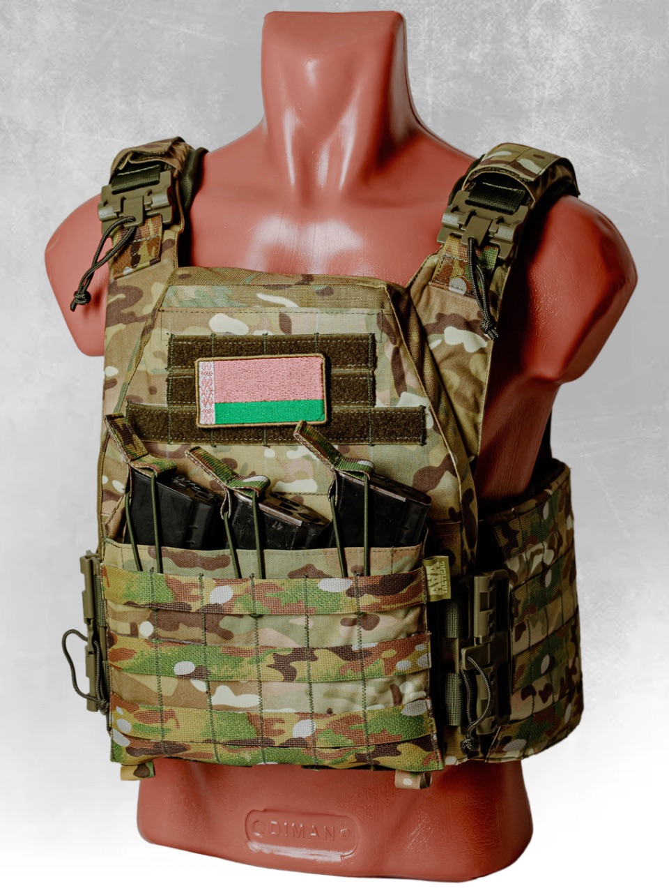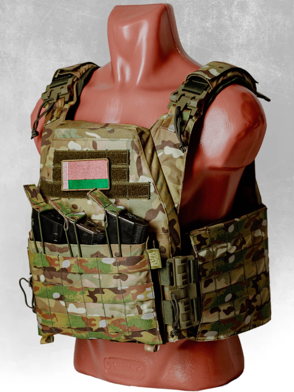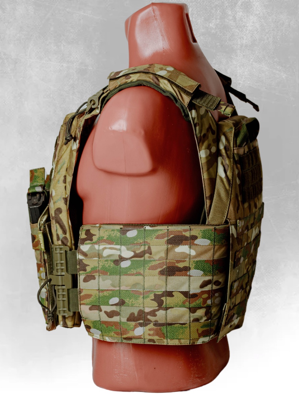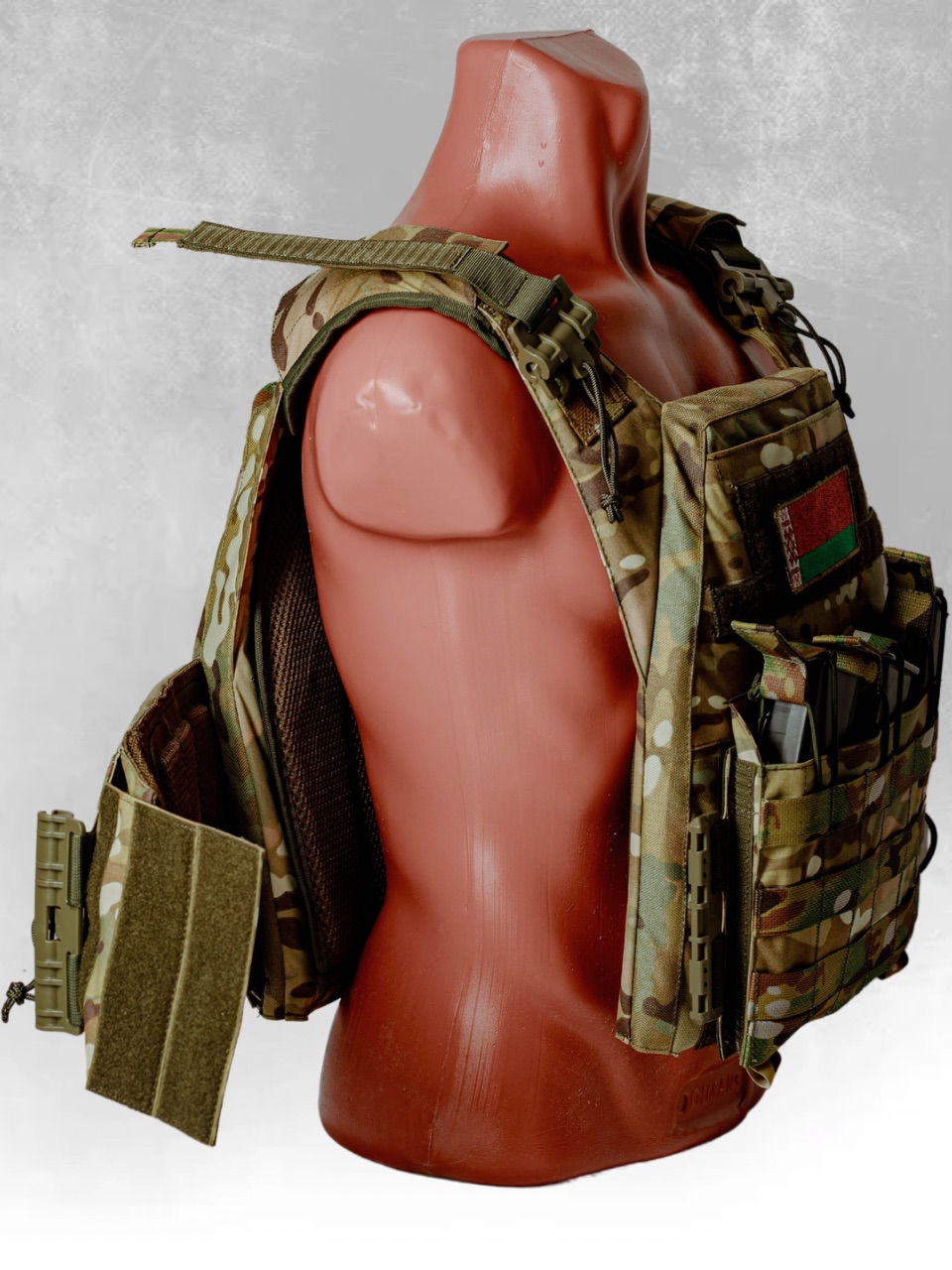 Плитник «Перун» FAST DROP — версия жилета «Перун» с системой быстрого сброса. Площадь защиты на 25% больше стандартных плейткерриеров. Изготовлен из нейлона.