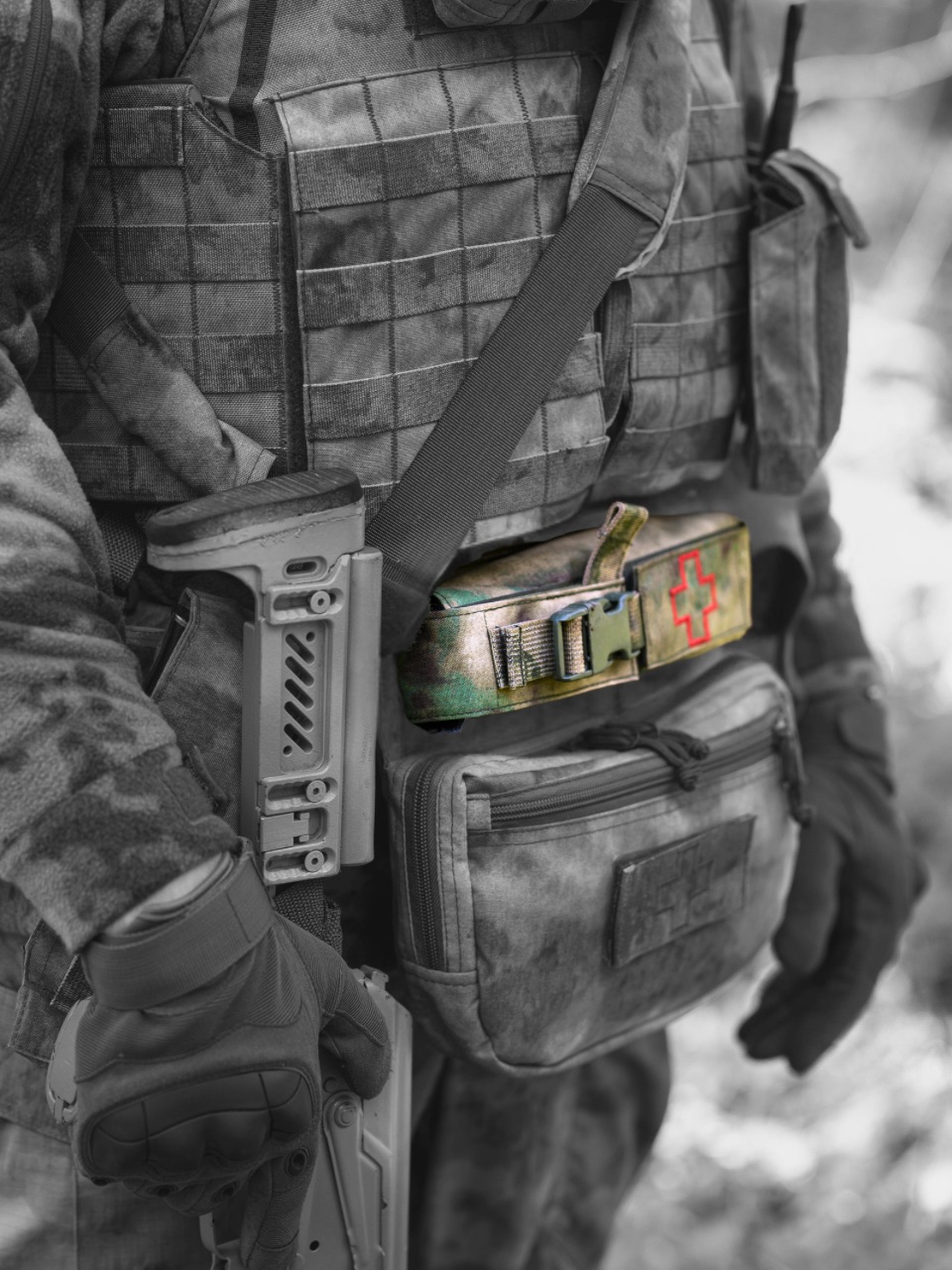 Напашный подсумок «Гриф» — утилитарный подсумок, который может использоваться как медицинский. Крепится на бронежилет или плитник в паховой области с помощью контактной ленты. Изготовлен из износостойкого нейлона.