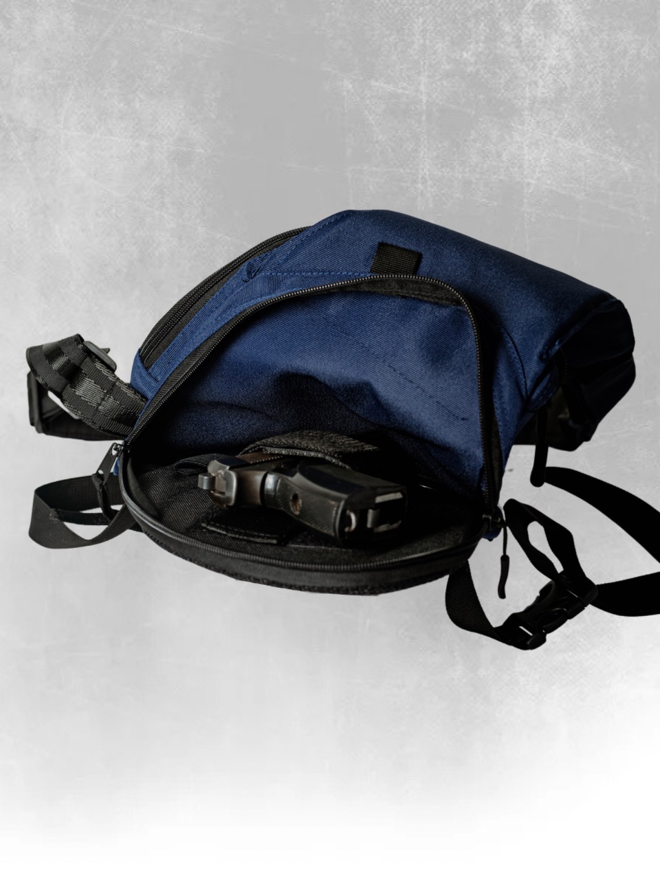 Сумка «Велес» — сумка-органайзер для скрытого ношения пистолета. Изготовлена из высокопрочного Оксфорда. Регулируемая плечевая лямка и поясной обхват — сумка не болтается при движении.